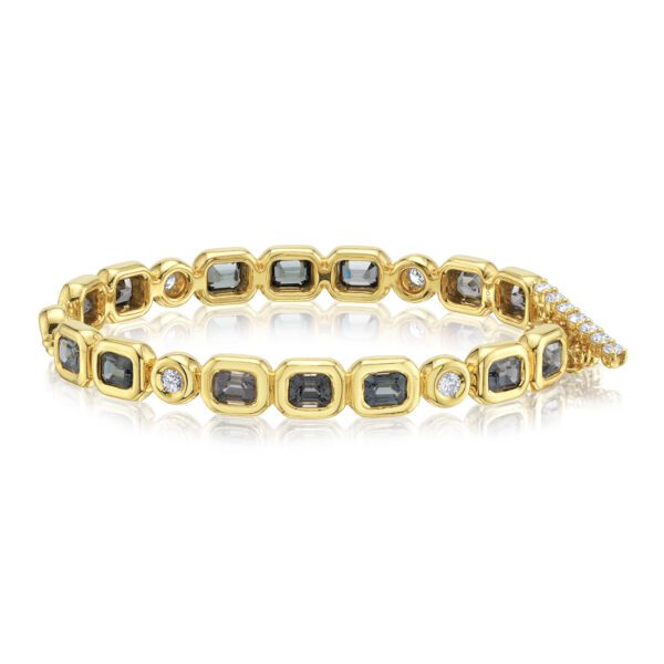 Erica Courtney presents 18K Yellow Gold “Double Bar” bracelet with 7.31ctw Black Spinel and 1.37ctw Diamonds.