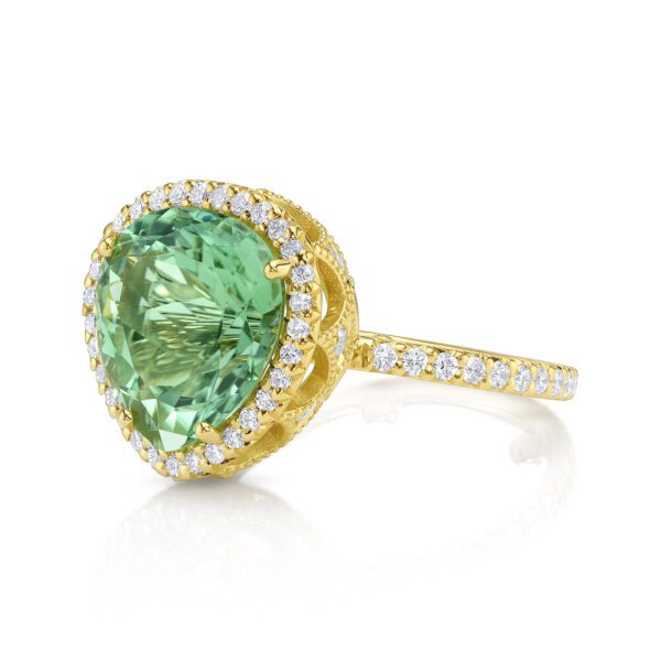 Erica Courtney presents 18K Yellow Gold “Emani” ring, featuring a 7.10ct Mint Tourmaline, accented with 1.09ctw Diamonds.